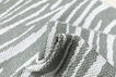 100% plastic where plastic straps are woven together and create rugs that are very durable and require minimal maintenance. Use mild detergent to remove any stains or wash at 30°C without any spinning cycle or tumble drying.